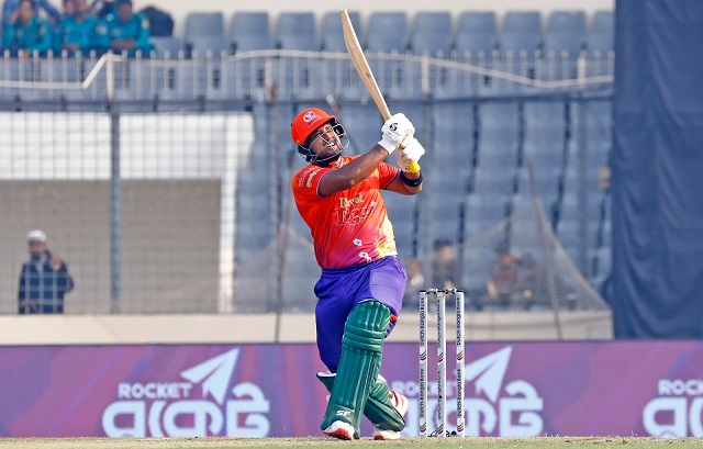 শেষ ওভারে আবারও সেই রিপন মণ্ডলকেই টানা দুই ছক্কা আর একটা চার হাঁকালেন। নিজের স্কোর নিয়ে গেলেন ৯৪-এ। ৪৭ বলে ২০০ স্ট্রাইক রেটের ইনিংস। সৌজন্যে আটটি ছক্কা আর সাতটি চার।