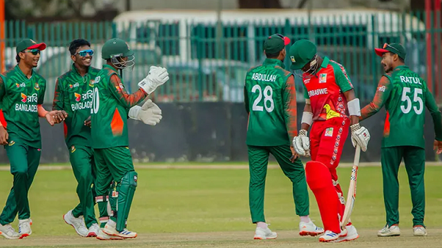 জবাবে ব্যাট করতে নেমে শুরুতেই উইকেট হারিয়ে বসে জিম্বাবুয়ে। শাহরিয়ার আল আমিনের পেস সামলাতে ব্যর্থ হন জিম্বাবুয়ের ওপেনার মুরাদজি। এরপর থেকেই নিয়মিত বিরতিতে উইকেট হারাতে থাকে স্বাগতিকরা। ব্যাটাররা ব্যস্ত হয়ে যান আসা-যাওয়ার মিছিলে।