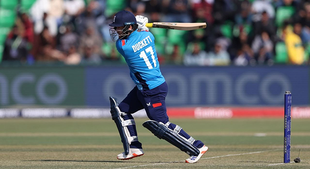 দুর্ভাগ্যের শিকার হয়ে আউট হতে হয়েছে তাকে। হুট করেই বল ধীর গতির হওয়ার সাথে, বেশ নিচু হয়ে যায়। তাতেই লেগ বিফোর আউট হন ডাকেট। নয়ত ইংল্যান্ডের সংগ্রহ আরও বেশ খানিকটা বাড়তে পারত।