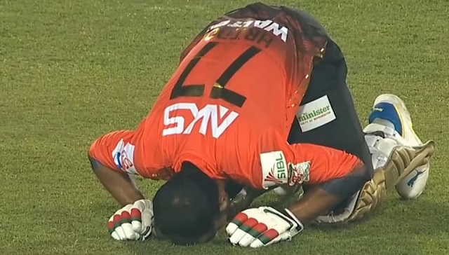 প্রথমে লং অন, এরপরের দু’টো মিড উইকেট অঞ্চল দিয়ে সীমানার বাইরে। পুরো মাঠ যেন এক লহমায় সর্বোচ্চ আনন্দটুকু খুঁজে নিল। সাইফ হাসানের এক ওভারে তাওহীদ হৃদয় সেই আনন্দের উপলক্ষ সৃষ্টি করে দিলেন। দেশীয় খেলোয়াড়দের এমন তাণ্ডব দেখবেন বলেই তো দর্শকরা অধীর আগ্রহে থাকেন অপেক্ষমান। হৃদয় দর্শকদের হৃদয়ের সেই তৃষ্ণাই যেন মেটালেন।