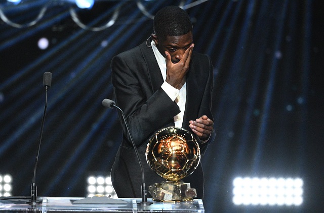 করতালিতে ভরা হলরুমে বিজয়ী কাঁদছেন, আর দর্শকসারিতে বসে প্রতিদ্বন্দ্বী ইয়ামাল তাকিয়ে আছেন অবাক চাহনিতে। তিনি বুঝে গেলেন, এই জায়গাটা ডেম্বেলের।
