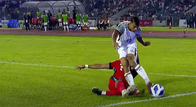 কিন্তু বলের ধারেকাছেও পৌঁছায়নি তার পা। তার সেই ট্যাকেল আইন বহির্ভূত, তার ওই ট্যাকেল পেনাল্টির শাস্তিযোগ্য। কিন্তু ফিলিপাইনের রেফারি ক্লিফফোর্ড দায়ফুয়াট জানালেন সেটি ফাউল নয়, বরং কর্ণার পেয়েছে বাংলাদেশ। ওই একটি ভুলে কারণে বাংলাদেশ হল পয়েন্ট বঞ্চিত। ঘরের মাঠে বহুল আকাঙ্ক্ষিত জয় পাওয়া হল না হামজা চৌধুরীদের।
