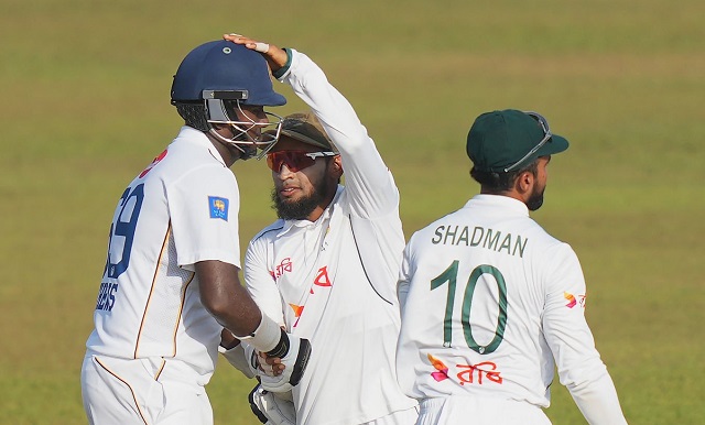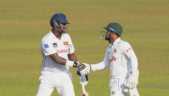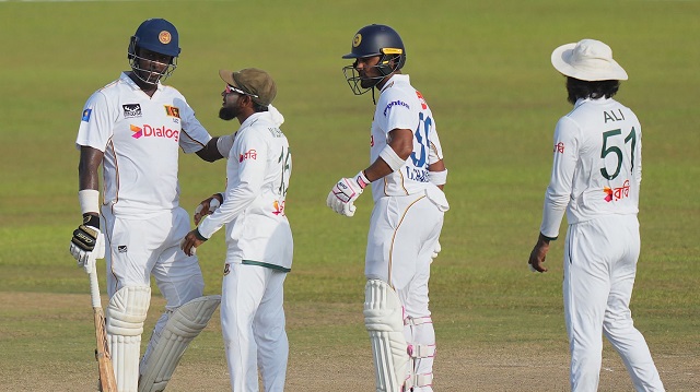 সিলি মিড-অফে দাঁড়ানো মুমিনুল হক সেই বলটা দুই হাতে ধরলেন—ম্যাথিউসের টেস্ট জীবনের শেষ দৃশ্যটা তখন চিরকালীন হয়ে গেল। এক ঝলকে থেমে গেল গল আন্তর্জাতিক স্টেডিয়াম।