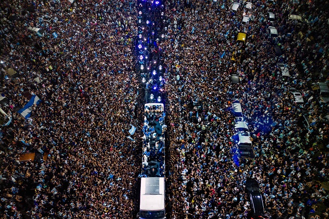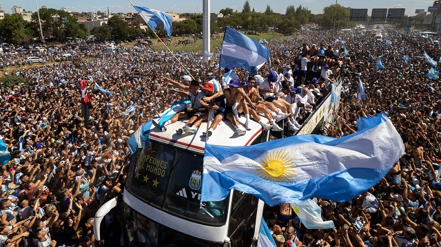 দেশে ফিরেছে অধিনায়ক লিওনেল মেসির নেতৃত্বাধীন বিশ্বকাপ জয়ী আর্জেন্টিনা জাতীয় ফুটবল দল। ১৯৮৬ সালের পর প্রথমবার বিশ্বকাপ জয়ী দলটিকে রাজধানীতে দেয়া হয় বীরোচিত সংবর্ধনা। বুয়েন্স আয়ার্সে এদিন এমন মানুষ হয়তো খুঁজে পাওয়া যাবে না – যে রাস্তায় নামেনি।