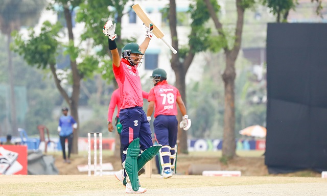 ত্রিশগজের মধ্যেই কোনরকম ঠেলে দিয়ে একটা রিস্কি সিঙ্গেল। এতেই চলতি ডিপিএলে দ্বিতীয়বারের মত ব্যাটটা আকাশপানে তুলতে পারলেন নাঈম …
