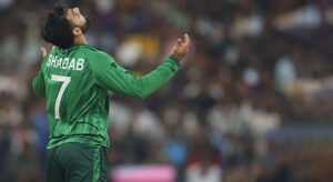 চার রানের জন্য হাফ সেঞ্চুরি মিস করেছেন। স্ট্রাইক রেট ১৪৪-এর কাছাকাছি। ৩২ বলের ইনিংসে ছিল চারটি চার ও একটি ছক্কা। মিডল ওভারে রানের খাতা সচল রাখার জন্যই তাঁকে চার নম্বরে পাঠায় পাকিস্তান। বিশ্বকাপে প্রথমবারের মত পাকিস্তানের এই পরিকল্পনা সফল হল।
