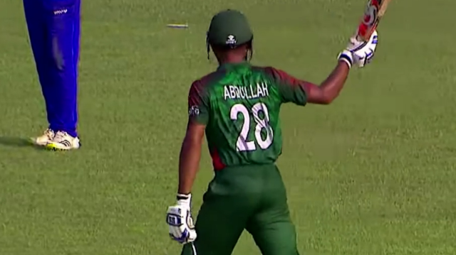 ফলাফল— বাংলাদেশ ছয় উইকেট হারিয়ে ফেলে মাত্র ৪০ রানের মাথায়। একটা লজ্জার হার হাতছানি দিচ্ছিল বাংলাদেশের সামনে। সেখান থেকে মান বাঁচালেন দেবাশিস এবং আবদুল্লাহ। দুজনের ১০৮ রানের জুটিটা সম্মানহানি হতে দেয়নি বাংলাদেশের।