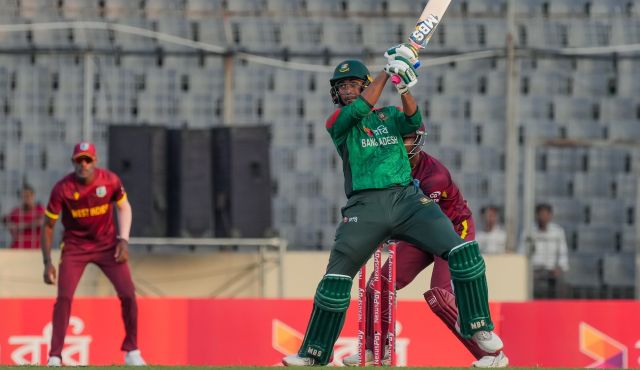 রান তাড়া করতে নামা উইন্ডিজের লাগাম শুরুতেই টেনে ধরেন নাসুম আহমেদ। ব্র্যান্ডন কিংকে ফিরিয়ে দেন প্রথম ওভারেই। ১৩৩ রানে ওয়েস্ট ইন্ডিজের সাত উইকেট তুলে নিয়ে বাংলাদেশ তখন চালকের আসনে। তবে ক্যারিবীয়দের আশা বেঁচে ছিল শাই হোপের ব্যাটে। ম্যাচ গড়ায় শেষ ওভার পর্যন্ত। আর উইন্ডিজের সামনে সমীকরণ দাঁড়ায় ছয় বলে পাঁচ রানের।