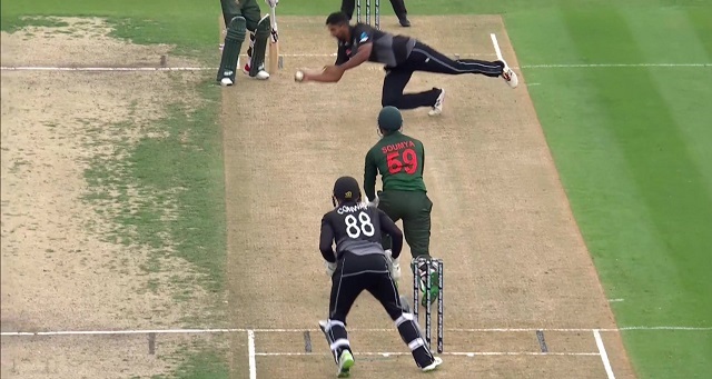 প্রথম বল থেকেই দারুণ খেলতে থাকা নাঈম শেখ পঞ্চম ওভারে ফার্গুসনের প্রথম বল মিড অন দিয়ে চার মারলেও পরের বলেই আউট হয়ে যান। এলবিডব্লিউয়ের ফাঁদে পড়া নাঈম শেখের ইনিংস শেষ হয় ২৮ রানে। এরপর বাংলদেশের ইনিংসে তান্ডব চালান ইশ সোধি।