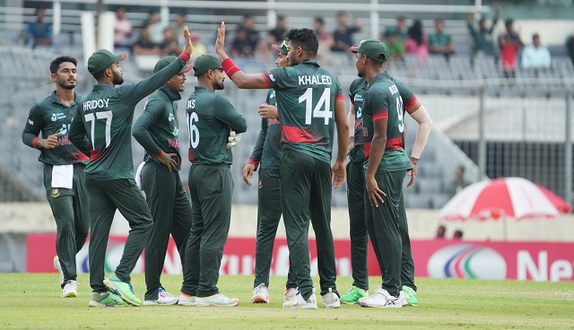 বাংলাদেশের ব্যাটিং ইনিংসের ধ্বস নামান ইশ সোদি। টপ অর্ডার থেকে লোয়ার অর্ডার অধিকাংশ উইকেটই গেছে তার পকেটে। ৬ উইকেট নিয়েছেন ব্ল্যাকক্যাপসদের এই লেগ স্পিনার। যদিও শেষের দিকে নাসুম আহমেদ তুলেছিলেন ঝড়। সেই ঝড় কেবলই হারের কালক্ষেপণ করেছে। ১৬৮ রানে অলআউট হয়ে যায় বাংলাদেশ। তাতে ৮৬ রানের লজ্জায় পড়ে লিটন দাসের দল।