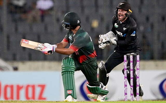 ২৫৫ রানের লক্ষ্যমাত্রায় বাংলাদেশ শুরুটা করে একটু রয়েসয়ে। তবে ধীর সেই শুরুতেও বেশিক্ষণ স্থায়ী হননি লিটন কুমার দাস। ছয় রান করে কাইল জেমিসনের শিকারে পরিণত হন। তার বিদায়ের পর তরুণ তানজিদ হাসান তামিম আগ্রাসী ব্যাটিংয়ে আশা জোগাতে থাকেন। তবে সেটাও ছিল ক্ষণস্থায়ী। তানজিদ তামিমের বিদায়ের পর দ্রুতই প্যাভিলনের পথ ধরেন সৌম্য সরকার ও তাওহীদ হৃদয়। সবচেয়ে হতাশ করেছেন সৌম্য সরকার। শূন্যরানে সাজঘরে।