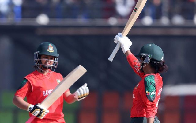 ত্রিভুবন ক্রিকেট গ্রাউন্ডে টস জিতে ব্যাটিংয়ের সিদ্ধান্ত নেয় বাংলাদেশ। শুরু থেকেই আক্রমণাত্মক মানসিকতা নিয়ে খেলতে নামেন দুই ওপেনার দিলারা আক্তার ও জুয়াইরিয়া ফেরদৌস। স্কটিশ বোলারদের ওপর চাপ তৈরি করে উদ্বোধনী জুটিতে দ্রুতই যোগ করেন ৬৭ রান।