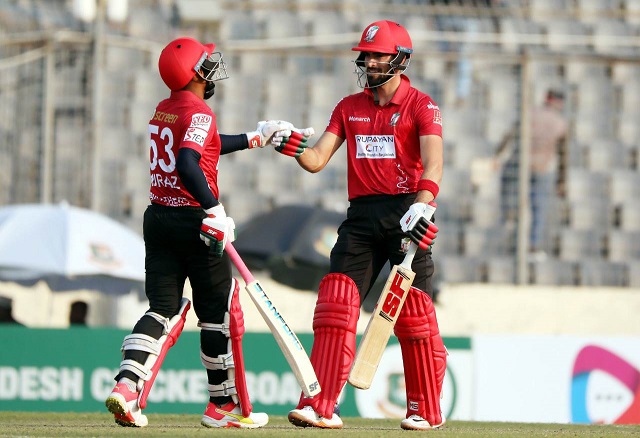 ২৯ বলে ৪৩ রানের ঝকঝকে ইনিংস খেলে মিরাজ আউট হলে দুই ডানহাতির জুটি ভাঙ্গে। নিজের ফিফটি পূর্ণ করে ফিরে যান ইব্রাহিমও। তবে কোন অঘটন ঘটতে দেননি আরেক আফগান করিম জানাত। ইফতেখার আহমেদের সাথে ৩৮ রানের অবিচ্ছিন্ন জুটি গড়ে বরিশালকে জয়ের বন্দরে পৌঁছে দেন এই অলরাউন্ডার।