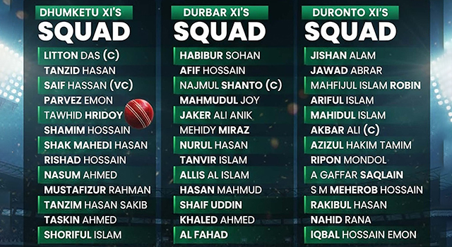 দুর্বার স্কোয়াড সত্যিকার অর্থেই দুর্বার হবে কি-না সেটা অবশ্য সময় বলে দেবে। তবে আকবরের তরুণ দলটার জন্য দুরন্ত নামটাও কিন্তু মন্দ নয়। জাতীয় দলের খেলোয়াড় ও হাই পারফরমেন্স ইউনিটে থাকা খেলোয়াড়দের সমন্বয়েই গড়া হয়েছে এই তিন দল। যেখানে প্রাইজমানি নির্ধারণ করা হয়েছে আড়াই কোটি টাকা।