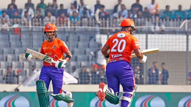 ইনিংসের তিন নম্বর ওভারের চর্তুথ বলে শাহীন শাহ আফ্রিদিকে ছক্কা মেরে বাউন্ডারির খাতা খুলেন তিনি। ছাড় দেননি মার্য়াসকেও। তাকেও হাঁকিয়েছেন স্ট্রেইটে এক চোখ ধাঁধানো ছক্কা। রিপন মণ্ডল, তানভির ইসলামদের বল সীমানা ছাড়া করেই এগিয়েছেন বড় সংগ্রহের পথে।