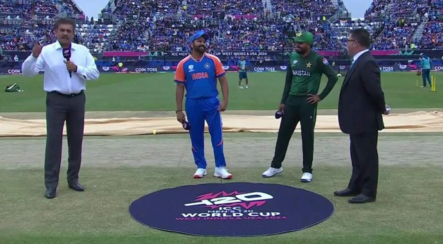 অনুষ্ঠিত হয় টস। বৃষ্টি বিঘ্নিত ম্যাচে টসে জিতে ভারতকে ব্যাটিংয়ে পাঠান পাকিস্তানের অধিনায়ক বাবর আজম। বৃষ্টির খেলা চলছিল তখনও।