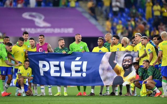 পেলের আইকনিক ছবি আর পেলে লেখা একটি ব্যানার হাতে দাঁড়িয়ে গেল ব্রাজিল দলটা। তাদের ইতিহাসের সেরা ফুটবলারের আরোগ্য কামনা করতেই এমন উদ্যোগ। পরে অবশ্য জানা গেল, দক্ষিণ কোরিয়ার বিপক্ষে এ ম্যাচজয়টি তারা পেলেকেই উৎসর্গ করেছে।