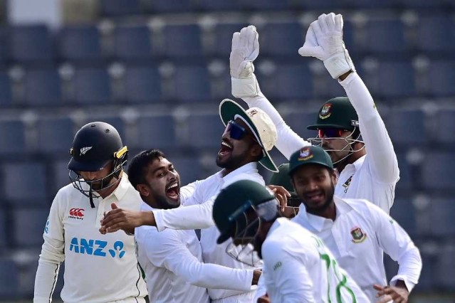অবশ্য এর বিপরীতে বোলিংয়ে দারুণ প্রতাপই দেখিয়েছে বাংলাদেশি বোলাররা। ৩১০ রানের পুঁজি নিয়ে ২৬৬ রানেই নিউজিল্যান্ডের ৮ ব্যাটারকে ফিরিয়েছে তাইজুল, মিরাজরা।