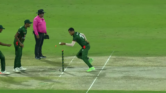 এক্সট্রা কাভারে বল ঠেলে দিয়ে সিঙ্গেল কল করেন গুলবাদিন। রহমত শাহ দৌঁড় শুরু করেন। কিন্তু, যখন দু’জনই ভুল বুঝতে পারেন, তখন অনেক দেরি হয়ে গেছে। স্ট্রাইকার এন্ডে বল ছুড়ে মারেন রিশাদ হোসেন। বিচক্ষণতার পরিচয় দেন জাকের আলী।