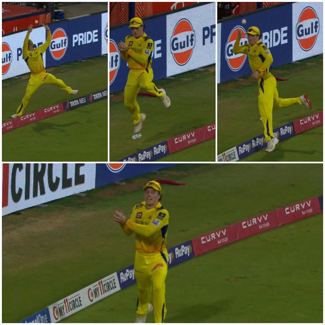 ঠিক তার পরেরদিন আরও একটি অবিশ্বাস্য ক্যাচ লুফে নিয়েছেন ডেওয়াল্ড ব্রেভিস। চেন্নাই সুপার কিংসের হাত থেকে ততক্ষণে অবশ্য ম্যাচ বেড়িয়ে গেছে। তবুও শশাঙ্ক সিংকে প্যাভিলিয়নে ফেরাতে কোন আলসেমি করলেন না ব্রেভিস। তিন বারের প্রচেষ্টাতে তিনি ছক্কা বাঁচিয়ে ক্যাচ লুফে নেন।