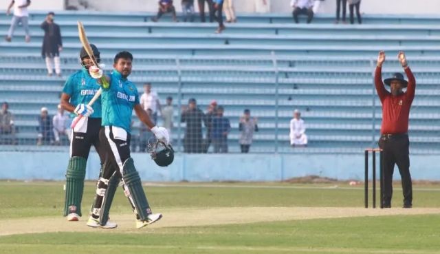 এই রান চেজ করে সেন্ট্রাল জোন জিততে পারে, এটা বোধহয় কেউ কল্পনাও করেনি। তবে বিশ্বাস ছিল জিসান আলমের ব্যাটে। একটু একটু করে জয়ের সম্ভাবনা বাঁচিয়ে তোলেন, খেলেন ১২৭ রানের অবিশ্বাস্য এক ইনিংস। তবে রান যে পাহাড়সম, জয়ের সীমানা তখনও বহুদূরে। সেখানেই বাজিমাত করেন মোসাদ্দেক হোসেন সৈকত।