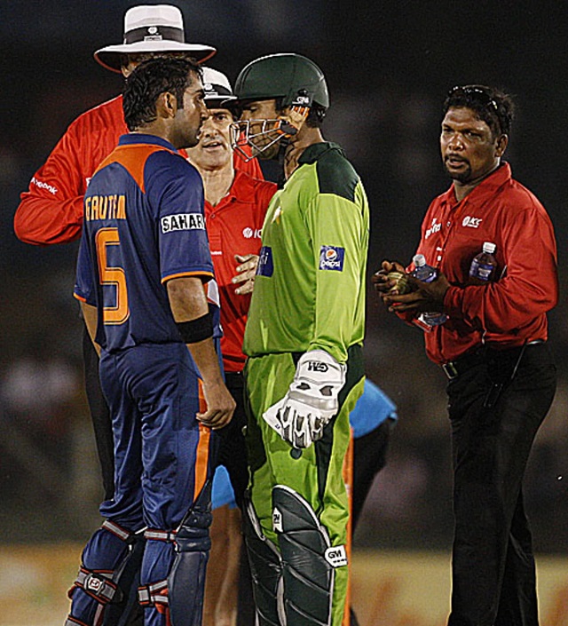 খেলা চলাকালীন পাকিস্তানি উইকেটরক্ষক আকমল ক্যাচ–বিহাইন্ড আবেদন করেছিলেন। আবেদনটি প্রত্যাখ্যান করে দেয়ার পরে গম্ভীর ও আকমলের মধ্যে উত্তপ্ত বিনিময় শুরু হয়। পরে পানীয় বিরতিতে, আকমলের সাথে গম্ভীরের আরেক দফা ঝগড়া বেঁধে যায়। সামান্য তর্ক থেকে বিষয়টি রীতিমতো মুখোমুখি ঝামেলার দিকে মোড় নিচ্ছিল। পরে বাধ্য হয়ে ধোনি ও গম্ভীরকে সেখান থেকে সরিয়ে দেয়া হয়।