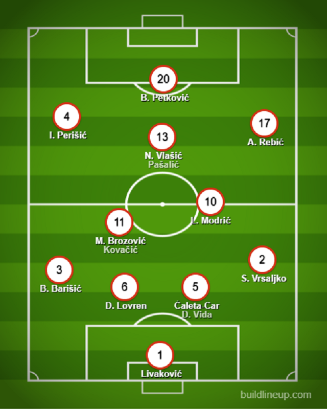 ক্রোয়েশিয়ার মূল ছক ৪-২-৩-১। তবে সময়ে সময়ে তা পরিবর্তনও হতে পারে। মিডফিল্ডে বিশাল অপশন থাকার সুবিধা এটাই। ভরেনের সঙ্গী হিসেবে মার্শেইর প্রতিভাবান ডিফেন্ডার দুজে কালেতা-কারের খেলার সম্ভাবনা বেশি।তবে অভিজ্ঞতার জন্য ডোমায়োগ ভিদাও নামতে পারেন।