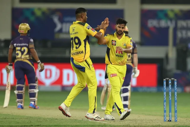 কলকাতা নাইট রাইডার্স: ১৬৫/৯ (ওভার: ২০; গিল- ৫১, আইয়ার- ৫০, রানা- ০, নারাইন- ২, মরগ্যান- ৪, কার্তিক- ৯, সাকিব- ০, রাহুল- ২; ঠাকুর- ৪-০-৩৮-৩, জাদেজা- ৪-০-২৭-২, হ্যাজেলউড- ৪-০-২৯-২)