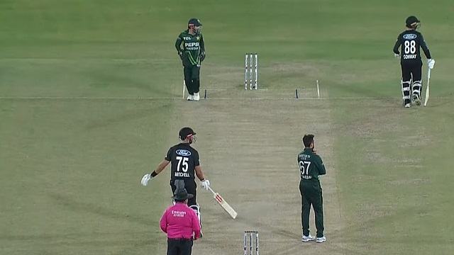 নিউজিল্যান্ডের ডেভন কনওয়ে তখন ৪৮ রান করে অপরাজিত ছিলেন। মাঠে একটা কালো রঙের বিড়াল আসল। হাটহাটি করল, এরপর দৌঁড়ে মাঠের বাইরেও চলে গেল। সিঙ্গেল নিয়ে ডেভন কনওয়েকে স্ট্রাইকে পাঠালেন ড্যারিল মিশেল। তিনি শর্ট বলে হুক করতে গেলেন, পুরোপুরি কনট্রোলে ছিলেন না, আবরার আহমেদের হাতে ক্যাচ তুলে দিলেন। হাফ সেঞ্চুরি থেকে কনওয়ে তখন মাত্র দুই রান দূরে।