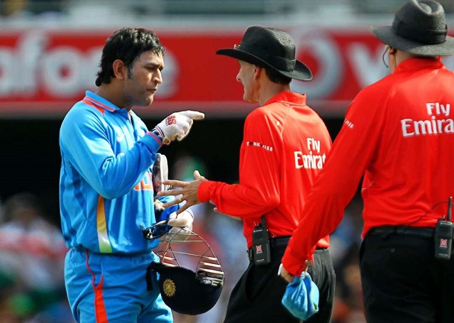 ২০১২ অস্ট্রেলিয়ার বিরুদ্ধে ওয়ানডে ম্যাচ, বোলার তখন সুরেশ রায়না। মাইক হাসিকে স্টাম্পিংয়ের ফাঁদে ফেলে সাজঘরে পাঠান ধোনি। তৃতীয় আম্পায়ার আউটও দিয়েছিলেন। সেই মতো প্যাভিলিয়নেও ফিরে যাচ্ছিলেন হাসি। তখনই ফিল্ড আম্পায়ার বিলি বাউডেন তাঁকে ফিরিয়ে আনেন।