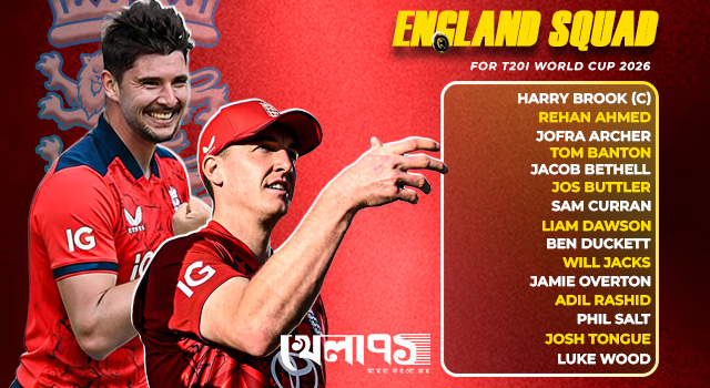 নেতৃত্বে থাকছেন হ্যারি ব্রুক। ব্যাটিং অর্ডারে অভিজ্ঞ জশ বাটলার, বেন ডাকেটরা রয়েছেন। ইনজুরি কাটিয়ে আবারও ইংল্যান্ডের টি-টোয়েন্টি দলে ফিরলেন ডাকেট। মারকুটে ওপেনার ফিল সল্টকে ছাড়া ইংল্যান্ডের টি-টোয়েন্টি স্কোয়াড কল্পনা করা বোকামি। জ্যাকব বেথেল, টম ব্যাটনরাও রয়েছেন বিশ্বকাপের স্কোয়াডে।