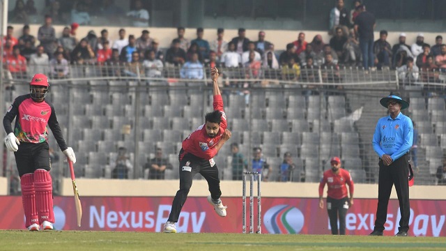 পাওয়ার প্লের শেষ ওভারে এসেই জোড়া আঘাত হানেন তিনি। রনি তালুকদার ও কাদিম আলাইনা কে ক্যাচের ফাদে ফেলে সাজঘরে ফেরান তিনি। চার উইকেটে ৩৫ রান নিয়ে তখন ধুকছে সিলেট। তার পরের ওভারেই এসেই এবার ক্লিন বোল্ড করে দেন নাহিদুল ইসলামকেও।