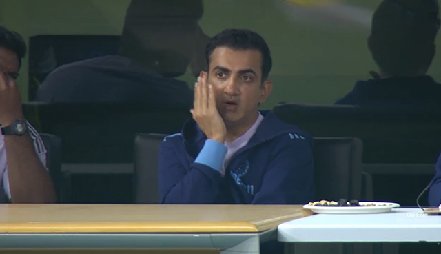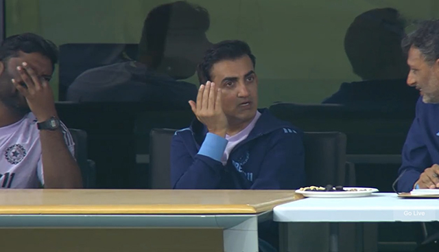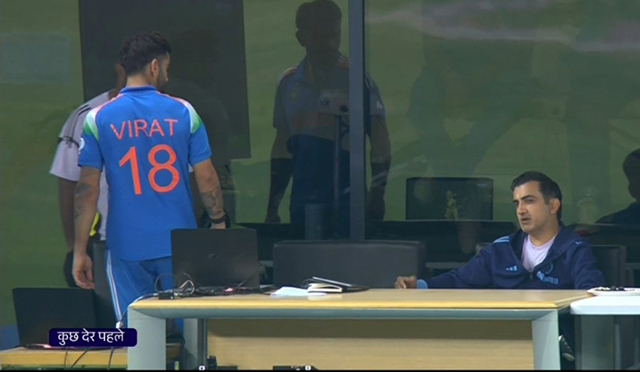 পরে ড্রেসিংরুমে গম্ভীরকে কোহলির সঙ্গে উত্তপ্ত আলোচনা করতে দেখা যায়, যেখানে তিনি হাত দিয়ে ইঙ্গিত করে বোঝাচ্ছিলেন কোন শটে আউট হলেন কোহলি। যেন কোহলির কাছে জবাব চাচ্ছিলেন গম্ভীর।
