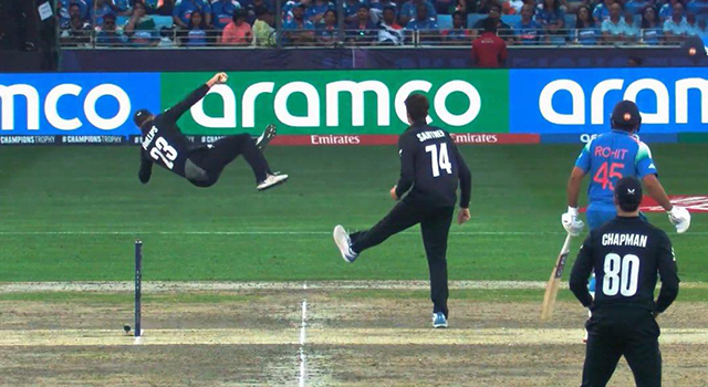 তারপর শরীরের বেশ পেছনে চলে যাওয়া বলটাকে তালুবন্দী করলেন ফিলিপস দ্য ফ্লাইং ফ্যালকন। ভারতের ব্যাটিং অর্ডারে আঘাত করবার কোন সুযোগই পাচ্ছিলেন না নিউজিল্যান্ডের বোলাররা। তাইতো ১০ শতাংশ সুযোগকে ১০০ শতাংশ বানালেন গ্লেন ফিলিপস।
