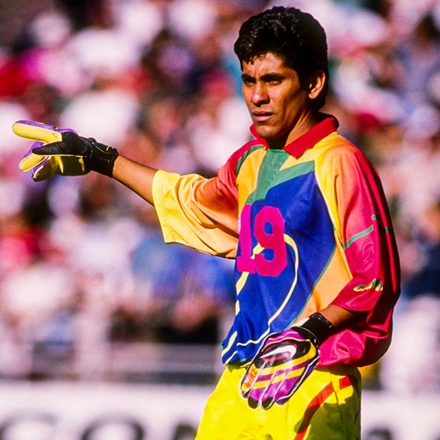 সার্কাসের জোকারের মত রংবেরঙের একটা জার্সি গায়ে জড়িয়ে মাঠে নামতেন এই কিংবদন্তি। সেই জার্সি এতই বিখ্যাত যে এটা দেখলেই সবাই মুহূর্তের মাঝে চিনে ফেলতো। তবে সময়ে সময়ে তিনি খেলার মাঝেই জার্সি বদলে স্ট্রাইকার হিসেবে নেমে পড়তেন।