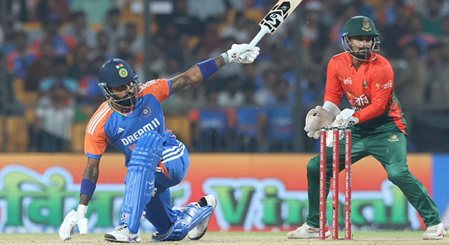 বাংলাদেশের বিপক্ষে প্রথম টি-টোয়েন্টি ম্যাচে সে প্রমাণটাই রেখেছেন ডানহাতি এই অলরাউন্ডার। প্রথম বল হাতে কোটার চার ওভার পূর্ণ করেছেন। তিনি যে ভারতের বোলিং পরিকল্পনার মূল অস্ত্র ছিলেন, তা বোঝা গেছে একেবারে ইনিংসের শুরুতেই। দ্বিতীয় ওভারেই তার হাত বল তুলে দেন সুরিয়াকুমার যাদব। নিরাশ হার্দিক করেননি।