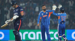 ছক্কা হাঁকিয়ে স্পর্শ করেন অর্ধশত রানের মাইলফলক। ঠিক এর পরের বলেই আরও একটি ছক্কা প্রায় তিনি হাঁকিয়ে ফেলেছিলেন। বদলি ফিল্ডার ডিলান লিচার অসাধারণ দক্ষতায় ক্যাচটি লুফে নেন। এরপরই বরং ওই চেরি অন টপ ফিনিশিং টাচ তার আর দেওয়া হয়ে ওঠেনি। ভারতও হার্দিকের বিদায়ের পর হয়ে যায় এলোমেলো।