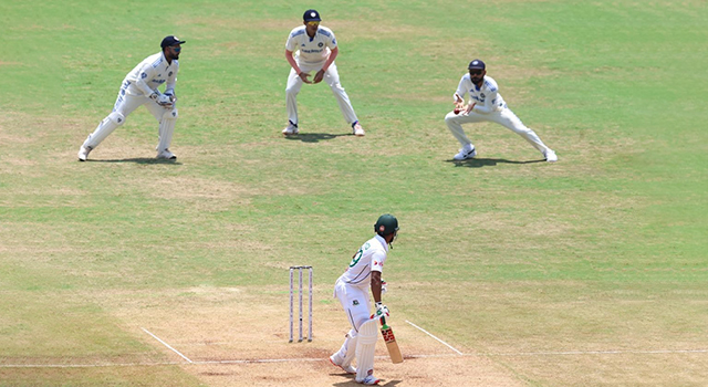 টেস্ট ক্রিকেটে বাংলাদেশ থাকে দ্বিধায়। না জয় পরাজয়ের নয়, ম্যাচ বাঁচানোর দ্বিধা। সেই দ্বিধায় বাংলাদেশের ব্যাটাররা বরং খোলসবন্দী হয়ে যান। কিন্তু রাওয়ালপিন্ডি টেস্টে ব্যতিক্রম মানসিকতার...