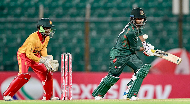 কব্জির মোচড়ে একটা ফ্লিক। ফাইন লেগের উপর দিয়ে সেটা পাড়ি দিল ৯৯ মিটার দূরত্ব। তাওহীদ হৃদয়ের কি অসাধারণ ছক্কা! জিম্বাবুয়ের বিপক্ষে এমন আরও দুইটি দৃষ্টিনন্দন ছক্কা মেরেছেন হৃদয়। চোখ ধাঁধানো পাওয়ার হিটিং করতে তিনি বরাবরই পারদর্শী। সে আর নতুন কি!