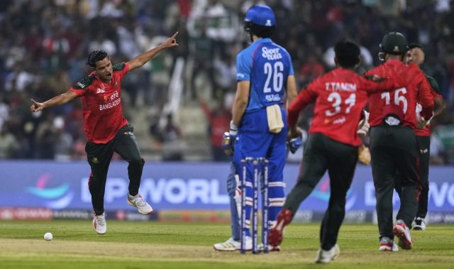 তবে বাংলাদেশের ত্রাতা হয়ে আসেন রিশাদ হোসেন। দুই ওভারের ব্যবধানে ফেরান দুজনকেই। ১৩তম ওভারে মোহাম্মদ নবিকে মুস্তাফিজ শিকার বানালে ম্যাচ তখন অনেকটাই বাংলাদেশের পকেটে। তবে বিপত্তি বাঁধে আজমতউল্লাহ ওমরজাইয়ের ব্যাটিং তাণ্ডবে। ১৬ বলে ৩০ রানের ইনিংস খেলে জমিয়ে তোলেন ম্যাচ। শেষমেষ তাসকিনের সামনে থামতে হয় তাঁকে।