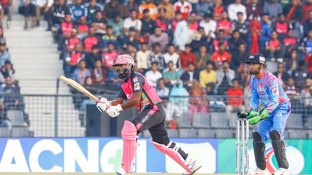 দুইশোর বেশি রান তাড়া করতে নেমে এদিন একাই লড়লেন তিনি। শুরুটা করেন শামীম হোসেন পাটওয়ারীকে ব্যাক-টু-ব্যাক বাউন্ডারি মেরে। এরপর শরিফুল ইসলামের বলে লং অনে বিশাল ছক্কা মেরে ছক্কার খাতা খুললেন। পেসারদের বিপক্ষে তার আক্রমণাত্মক মনোভাব ছিল চোখে পড়ার মতো।