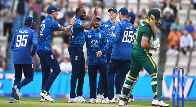 ইংল্যান্ডের ক্রিকেট ইতিহাসে এটি পঞ্চম সর্বোচ্চ দলীয় সংগ্রহ। এমন ম্যাচে প্রোটিয়া ব্যাটাররা নিশ্চয়ই মনে মনে ভেবেছিলেন ‘ইশ আজ যদি এবি ডি ভিলিয়ার্স থাকতেন।’ কিন্তু তাদেরকে খুব বেশি সময়ে সেই ভাবনার সাগরে ডুবে থাকতে দিলেন না জোফরা আর্চার। ইনিংসের দ্বিতীয় বলেই তিনি প্রোটিয়াদের ব্যাটিং দূর্গে হেনেছেন আঘাত।