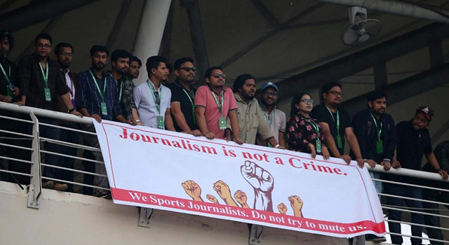 মাঠ ছেড়ে বেড়িয়ে যাচ্ছেন সাংবাদিকরা। সাংবাদিকদের কাজের স্বাধীনতায় হস্তক্ষেপের প্রতিবাদ হিসেবেই অদম্য বাংলাদেশ টি-টোয়েন্টি কাপের ফাইনাল ম্যাচ বর্জন করেছেন ক্রীড়া সাংবাদিকরা। সম্প্রতি বেশ আলোচিত-সমালোচিত এক ছবির রেশ ধরেই বাংলাদেশ ক্রিকেট বোর্ডের আচরণে ক্ষুব্ধ সাংবাদিকমহল।