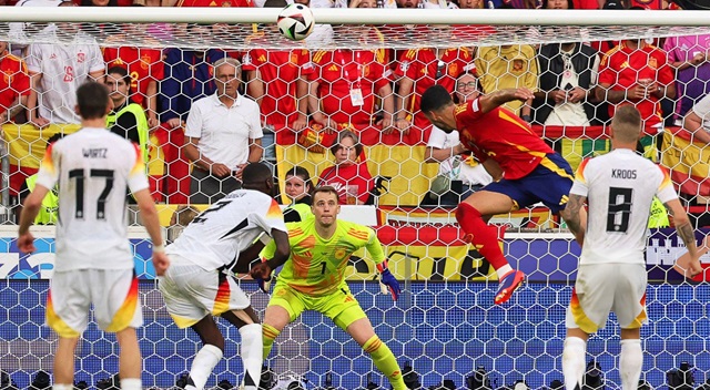 জার্মানি বনাম স্পেন – বহুল আকাঙ্খিত ম্যাচটা তখন প্রায় টাইব্রেকারে পৌঁছে গিয়েছিল। কিন্তু হঠাৎ কি জানি হলো, শূন্যে লাফিয়ে উঠে আকাশ ছুঁতে ইচ্ছে হলো মিকেল মেরিনো। ছুঁয়েও ফেললেন বটে, দানি অলমোর ক্রসে মাথা ছুইয়ে জার্মান বধের গল্প লিখলেন তিনি। জার্মানির সাথে সাথে অবসরের দ্বারপ্রান্তে থাকা টনি ক্রুসকেও শেষ বিদায় জানিয়ে দিতে হলো।