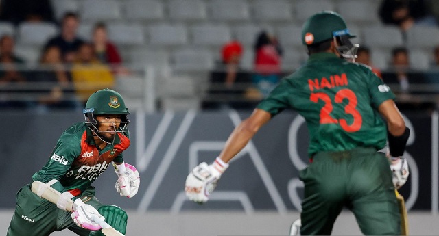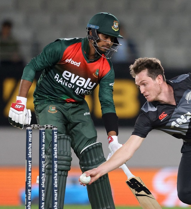 বাংলাদেশ: নাঈম- ১৯, সৌম্য- ১০, লিটন- ০, নাজমুল- ৮, আফিফ- ৮, মোসাদ্দেক- ১৩, মেহেদী- ০, শরিফুল- ৬, তাসকিন- ৫, রুবেল-) (মিলনে- ২-০-২৪-১, ফার্গুসন- ২-০-১৩-১, অ্যাশলে- ২-০-১৩-৪, সাউদি- ২-০-১৫-৩)