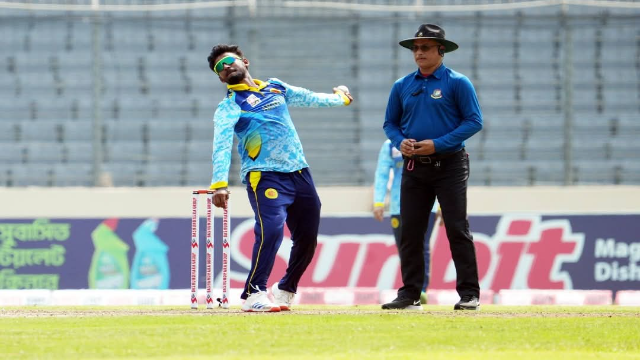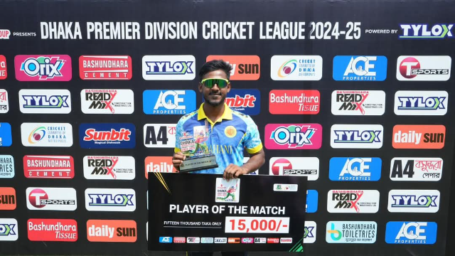 ক্রিজে থিতু হওয়া জয়রাজ শেখকে আউট করে ম্যাচের মোমেন্টাম ঘুরিয়ে দিয়ে শুরু, শেষটাও তার হাতেই। আলাউদ্দিন বাবু, মোহর শেখ, তানভীর হোসেনরা সামান্য প্রতিরোধও গড়তে পারেনি তার বিরুদ্ধে।