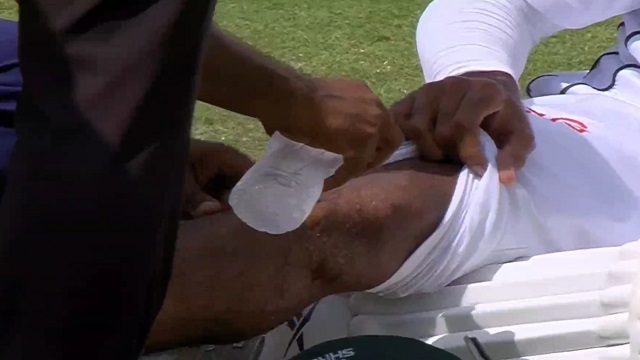 ভ্রম নয়, সত্যিই ভ্রমর কামড়েছে মেহেদী হাসান মিরাজকে। তিনি বসে পড়লেন মাটিতে। ফিজিও এসে ঠাণ্ডা পানি নিয়ে ব্যাথাটা কমিয়ে দেওয়ার চেষ্টা করলেন। মিরাজের মুখের ভঙ্গিতেই স্পষ্ট, ভারতের বোলারদের চেয়ে বেরসিক ভ্রমরটাই তাঁকে বেশি ভুগিয়েছে।
