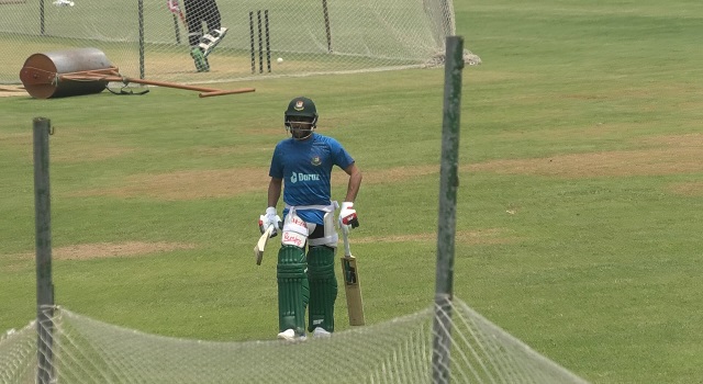 এরপর ক্লান্তিহীন এক আয়েশি পদযাত্রা করে ইস্টার্ন গ্যালারি লাগোয়া নেটে এসেছেন আবারও ব্যাটিং অনুশীলন করতে। সেন্টার পিচে নেট বোলারদের বিপক্ষে ব্যাট করেছেন। এরপর সাইড নেটে এসে, চ্যালেঞ্জ ছুড়ে দিয়েছেন নিজেকে। কল্পনায় ভেবে নিয়েছেন ম্যাচের ৩৫ তম ওভারে খেলতে নেমেছেন তিনি। তেমনটাই জানিয়ে দেন ফিল্ডিং কোচ শেন ম্যাকডরমটকে।