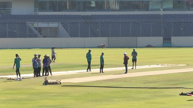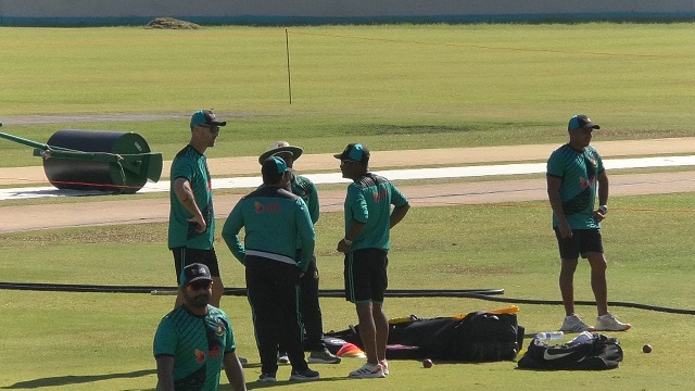 নতুন কি চমক নিয়ে অপেক্ষায় আছে মিরপুরের উইকেট? সেটা জানতেই মাঠে নেমেই টনি হেমিংওয়ের কাছে ছুটে গেল বাংলাদেশ দল। আরও নির্দিষ্ট করে বললে সেই বহরে সবার আগে পৌঁছালেন কোচিং স্টাফ দলের দুই সদস্য – মুশতাক আহমেদ ও শন টেইট। স্পিন সহায়ক উইকেটই বরাবর মিরপুরের মাঠ উপহার দিয়ে আসছে।