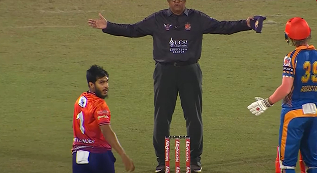 অফসাইডে সরে গিয়ে রুম বানিয়ে শট খেলতে চেয়েছিলেন মাহিদুল ইসলাম অঙ্কন। তার মতিগতি বুঝতে পেরে ওয়াইড অফসাইডে বল করতে চেয়েছেন মৃত্যুঞ্জয়। কিন্তু বলে ছিল না তেমন নিয়ন্ত্রণ। দুইবার হয়েছে ওয়াইড। দ্বিতীয় দফা তো প্রায় নো বল হতেই বসেছিল। ষোলকলা পূর্ণ করে তৃতীয়বার বল ছুড়লেন তিনি পিচের বাইরে। তাতে করে নো-বলও লেখা হয়ে যায় মৃত্যুঞ্জয়ের ওভারে।
